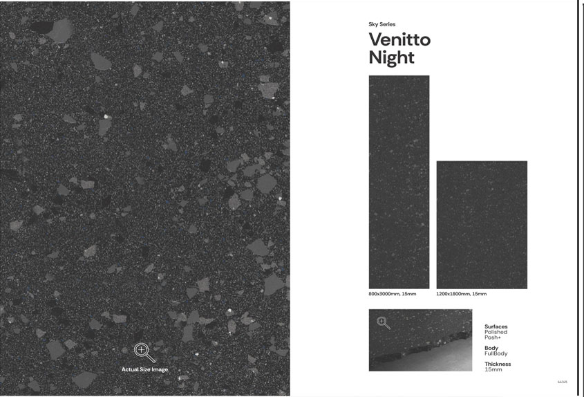 Venitto Sand vitrified tiles from Simpolo's Venitto Collection bring the timeless charm of Venetian terrazzo to contemporary interiors. Featuring a warm, sandy hue with a distinctive "Chips" design, these tiles are available in large formats of 1200x1800 mm and 800x3000 mm with a 15 mm thickness, ensuring seamless coverage and minimal grout lines. Offered in both matt and polished finishes, they are suitable for wall and floor applications in residential and commercial spaces.